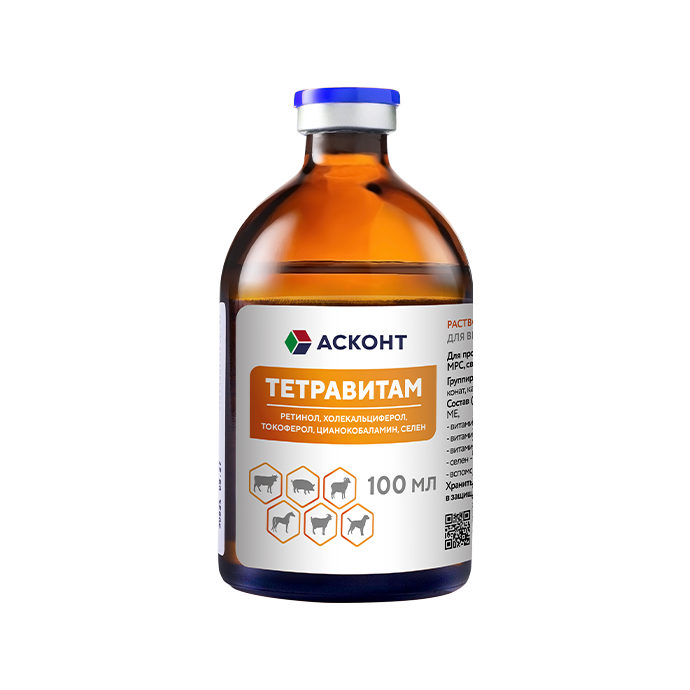 Тетравитам — это уникальный комплекс витаминов, разработанный для поддержания здоровья и повышения жизненного тонуса животного. Препарат укрепляет иммунитет, стимулирует метаболизм и восполняет дефициты необходимых полезных веществ.